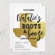 Make her Texas Bachelorette dreams come true with this fabulous Boot & Booze Texas Bachelorette Invitation. Put the focus on the lucky lady with its glamourous black and gold design and Texas gold map, ready for her to kick up her boots and have a good time!