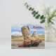 This is a wonderful photograph of western cowboy boots, complete with custom made spurs and a scenic sky in the background. The spurs are made from authentic 1880's era Mexican peso's, and say "Yeeha". All the text, front and back, is easy to customise.