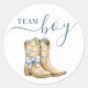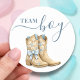 Boots or Bows Gender Reveal Blue Team Boy Classic Round Sticker
