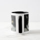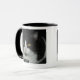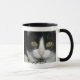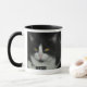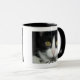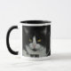 Black and white cat cup with black rim and handle.
