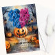 A spooky halloween pumpkin themed baby gender reveal party invitation template. The typography text reads Boo-y or Ghoul, alongside a pumpkin with emerging blue and pink smoke. Personalize by editing the digital or printed invitation with your event details.