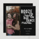 Funny and casual style "Save the date" card with the quote "Booze, Food, and Bad Dance Moves" in modern style typography design. Add your own photo to personalise this Save the Date template.