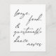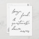 In this elegant, fun design I've used a contemporary handwritten script font to create graphic typography overlays. The one on the front reads "booze, food, & questionable dance moves" and on the back, "save the date" and "kindly deliver to:". Fill in the template blanks with your own details to personalise the design. All layers were added separately and left unlocked so you can also click to further customise and re-position text or even change sizes or detail fonts. You may also change the background to any colour you prefer.
