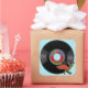 Square sticker to match our "Bop 'Til You Drop" invitation with an image of a 50s Rock & Roll 45 rpm record and a vintage image of Jitterbug dancers on a background of blue-on-blue polka dots. The title of the record is “Bop ‘Til You Drop (At My Party).” See matching invitation, favour tag, label and wrapping paper. See the entire Nifty 50s Sticker collection in the INVITES | Stickers & Labels section.
