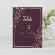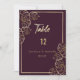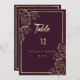 An elegant Bordeaux deep rich red and gold floral, tropical gold leaf design with printed gold handwritten typography. These trendy luxury Wedding Table Numbers invitations are the perfect print for any bride and groom's Wedding event. Customise this design with your details and monogram initial. All designs are printed.