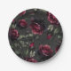 Bordeaux Red Roses Shadowy Grey Floral Wedding Paper Plate