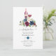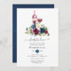 Watercolor bridal shower wine tasting invitation featuring navy blue, white and maroon red peonies and roses with elegant handwriting typography.