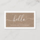 This simple and stylish business card features a kraft paper look in the centre, with a bold white border and the word "hello" in trendy script.