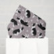 Cute black and white border collies sit, stay and rollover on a grey background with pawprints, a fun dog themed pattern.
