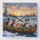 Border Collie Christmas Boat Holiday Square Wall Clock