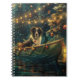 Set sail into the magic of the holiday season with this beautifully detailed illustration, showcasing a proud dog sitting in a festively decorated boat, gliding across a serene Christmas lake. The twinkling lights from nearby pine trees reflect off the water, casting a warm, festive glow that enhances the cosy ambiance. Ornaments dangle from the boat's sides, while glowing lanterns light the way, creating a scene that captures the true essence of Christmas warmth and joy. This nostalgic artwork brings a touch of holiday magic to any space, perfect for those who cherish the spirit of the season.