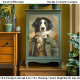 Dressed in countryside outfit, this black and white Border Collie dog stands against a backdrop of hills and autumn/fall foliage. With its cravat, check waistcoat, and moss green overcoat, this dog channels the look of a 19th century country gentleman. Topped off with a tweed flat cap, the design exudes heritage and rustic charm. Artwork similar to a digitally painted oil portrait with classical styling…..COLOR COMBINATIONS: Moss green, brown, orange, taupe, cream, black and white…..PERFECT FOR: Autumn themed decoupage, gentleman dog collections, rustic or seasonal mixed media, and charming gift wrap for animal lovers......…… 🖤 NOTE 1. This design is available in two options: Left and Right. You can find them in the Collection shown below. If they don’t appear there, try searching for their unique identifiers: DV9L for the Left design and DV9R for the Right version….🖤 NOTE 2. I personally find that 18lb tissue paper is ideal for decoupage. The 10lb paper is much thinner, so it dries faster, which can lead to more wrinkles. The 18lb paper is a bit thicker, giving you more time to work with it and helping to reduce wrinkles..….🖤 NOTE 3. All items with this particular design share my unique identifying “Letter/s Number/s” label in the title for easy searching.