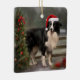Border Collie Dog in Snow Christmas Ceramic Ornament