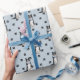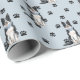 Border Collie Dog Paw Print Pattern on Silver Wrapping Paper