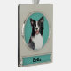Adorable Christmas keepsake ornament features a watercolor Border Collie dog portrait on aqua background. Customise with name or special message