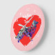 Border Collie dog silhouette with red, blue and yellow colorful butterflies abstract pattern on red love heart with pink background clock decoration. Adorable dog themed Valentine’s Day gift for any dog mom or dad pet lover.