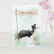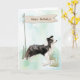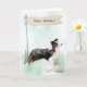 Smart, energetic, and always ready for action, this Border Collie birthday card captures the intelligence and charm of this hardworking breed. Set in a watercolor outdoor scene, the pup stands beneath a rustic flag-style banner, bringing a celebratory feel. A perfect choice for dog lovers who admire the agility and loyalty of the remarkable Border Collie.