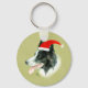 Border Collie Dog w Christmas Santa Hat Key Ring