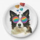 Border Collie Dog with Hearts Valentine's Day Paper Plate