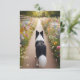 A flat card I created using an image I made using AI technology. A border Collie walking along a garden pathway.