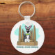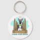 Fun flyball keychain for Border Collie owners. The black & white cartoon dog is jumping back towards the start line with a tennis ball in his mouth. Unique breed specific flyball products.