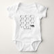 Cute Border Collie herding infant creeper! A black and white border collie cartoon is stealthily herding sheep as he gives them the infamous "border collie eye" in his crouching position. The darling fluffy sheep are in nice neat lines. Very cute border collie shirt for pet owners that adore this herding breed.