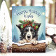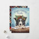 This adorable holiday greeting card features a cute Border Collie Dog illustration wearing a festive crown wreath of holly, pine, and berries, with snowflakes gently falling against a Rustic Snowy Pine Tree Forest background. The Border Collie Dog is peeking over the snow-capped log to say hello! The playful text "Happy Holiday Wishes" adds a warm seasonal greeting, and can be customised as you like. The reverse side is decorated with a classic plaid check, adding a traditional touch to the overall design. This cute, playful card is perfect for sending holiday cheer to family and friends, and the customisable name and date make it a personalised keepsake.