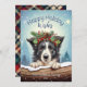 Border Collie in Rustic Snowing Forest Happy Holiday Card
