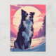 Border Collie in the snowy forest during sunset Postcard