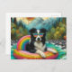 Border Collie on a Rainbow Colour Float Postcard