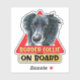 Add a touch of charm to your car or truck with this vibrant "Border Collie On Board" car sticker. Stick it on your rear window, your boot door or your bumper, this unique sticker features an eye-catching red triangle shaped traffic sign design, with a watercolor Scottish Dog at its centre. Perfect for any Border Collie owner around the world, this "Border Collie On Board" sticker not only showcases your love for your furry friend, but also ensures that everyone around knows it. Order yours today and let your Border Collie ride in style!