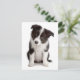 This fun canine postcard features a portrait of a baby black and white Border Collie puppy highlighted against a crisp white background. The back of the postcard is blank for your message.