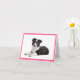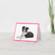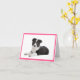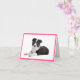 Aww...Who can resist the sweet face of a Border Collie puppy dog? This fun blank note card features a portrait of a black and white Border Collie puppy dog resting against a crisp white background with a pink border.