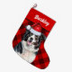 Border Collie Red Buffalo Plaid with Dog's Name Large Christmas Stocking