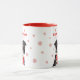 Border Collie Red Heart Bandana Christmas Mug. Start your morning merry and bright with this festive Border Collie mug! The perfect Christmas gift for dog moms and dads, it features a happy dog wearing a red scarf surrounded by snowflakes. Add your own name or holiday message for a personalized touch.