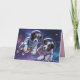 A cute dog Valentine's Day card featuring a Border Collie couple in a flying saucer going to the moon.