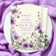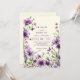 Border of purple flowers and RSVP QR code wedding Invitation. Invite your guests with a touch of timeless romance. This enchanting wedding invitation features a captivating border of rich purple anemone flowers in a delicate vintage style. Green leaves and whimsical butterflies flutter gracefully, all set against a soft, creamy off-white background. The design marries sophistication with a personal touch, combining elegant classic and flowing script calligraphy fonts. For modern convenience, the reverse side includes a discreet QR code for seamless online RSVP.