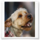 Happy border terrier cross bred dog smiling and mugging for the camera.
