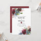 Peony flowers and baby eucalyptus leaves wedding invitation with accents of burgundy, plum, blush pink, indigo, navy and dusty blue.