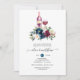 Watercolor wedding engagement party wine tasting invitation featuring navy blue, white and maroon red peonies and roses with elegant handwriting typography.