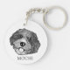 Bordoodle Dog Hand Drawing Personalised Key Ring
