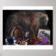 Here's Boris, the sweetest boy dog ever, with a still life of equine themed items. There's a saddle, boots, ribbons, a brush, a hunt cap, and a book open to one of my favourite paintings by the great horse painter, Sir Alfred Munnings, among other things. The owners of this painting are also the owners of one of Boris' sons, a handsome boy named Basil! Feel free to resize this image if you want more or less border by clicking on the design option and dragging a corner.