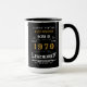 For those born in 1970 and celebrating a birthday we have the ideal birthday coffee mug. The black background with a white and gold vintage typography design design is simple and yet elegant with a retro feel. Easily customise the text of this birthday gift using the template provided. More gifts and party supplies available with the "Legendary" design in the store.
