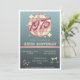 Retro Vintage-style invitation for a birthday party bash! Get ready to groove under the disco ball, with a splash of light pink tones and a groovy vintage "1975" script on a dark blue gradient toned background.