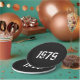 Birth Year themed party supplies. Born in Year 1979 Black with White typography for a an Over the Hill Birthday celebration.