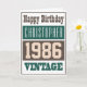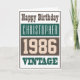 A birthday card with the year born. If your looking for a card that features the recipient's year of birth, then this one is for you. Add your choice of name and inside message. 1986