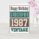 A birthday card with the year born. If your looking for a card that features the recipient's year of birth, then this one is for you. Add your choice of name and inside message. 1987