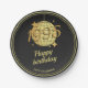 Born in 1995 30th birthday paper plates adorned with golden disco ball on black backdrop, allowing for adjusting the year number, creating a truly festive table decor element for any birthday party.