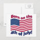 Born on the 4th of July, 4th of July postcards, invitations. Waving American flag in USA red white and blue. The USA was born on the 4th of July. Perhaps you were too? Patriotic statement for Independence day or any day. Easy personalisation for your message or 4th of July party invitation.