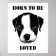Meet the charming Boston Terrier pup in this captivating black and white graphic. With its expressive eyes and the heartfelt phrase 'Born to be Loved,' this artwork is a delightful reminder of unconditional love and joy. Perfect for any animal lover's home, it's more than just a piece of art, it's a celebration of love and companionship.